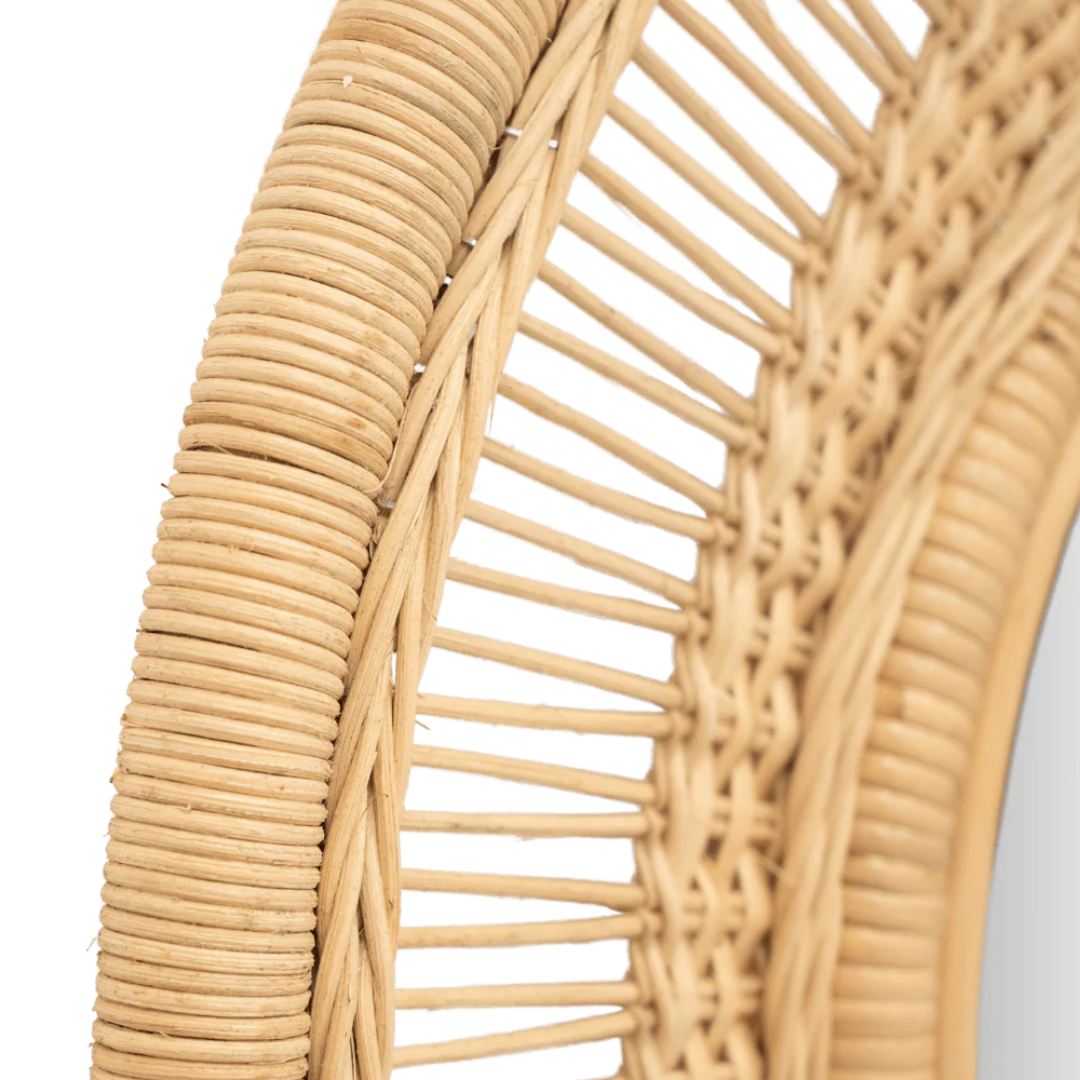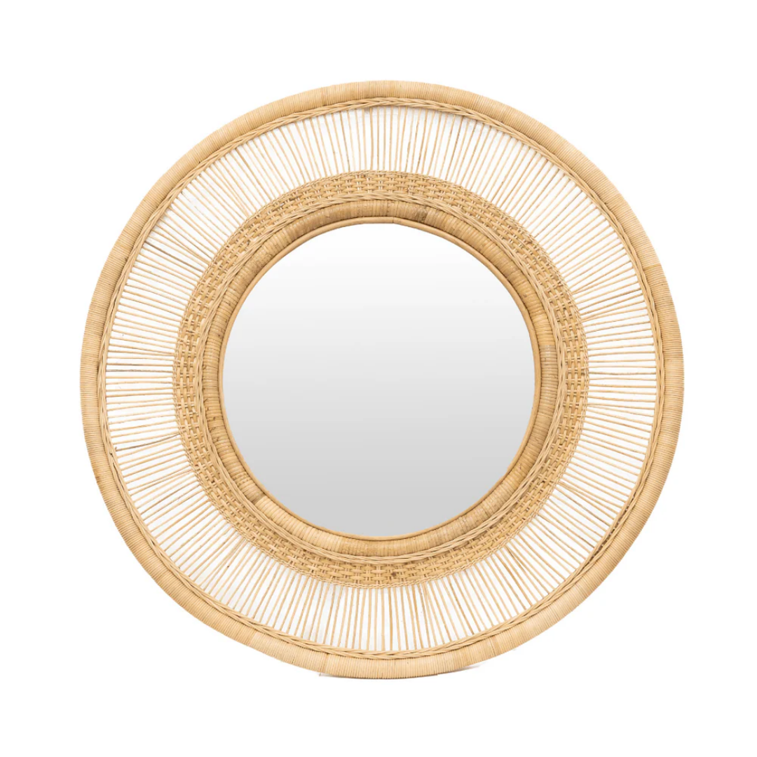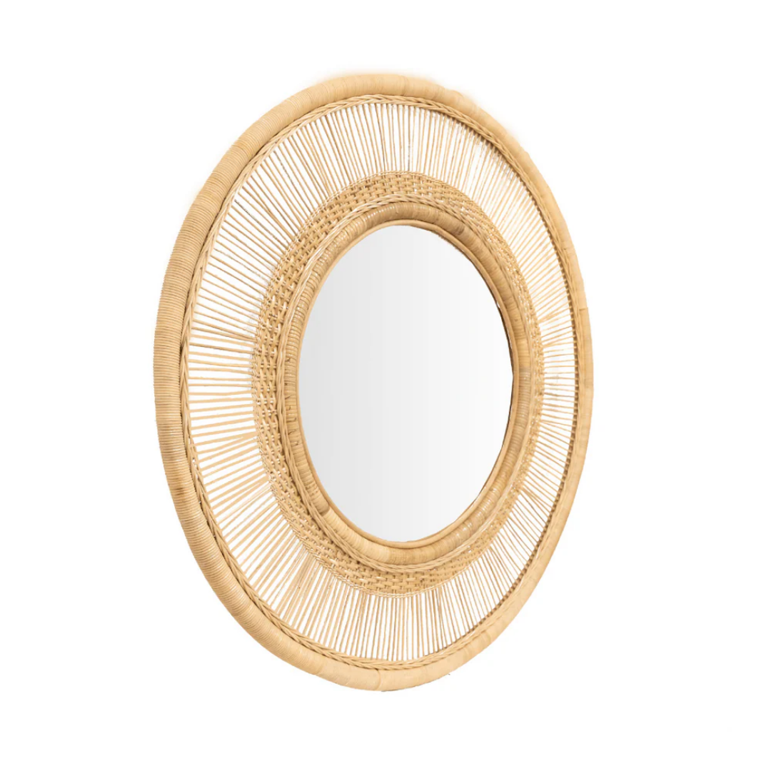 Espejo en ratán. Ideal para pasillos, escaleras y baños.