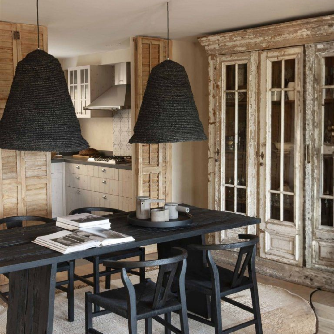 Colgante con tejido cerrado . Luz cálida y uniforme para espacios amplios.