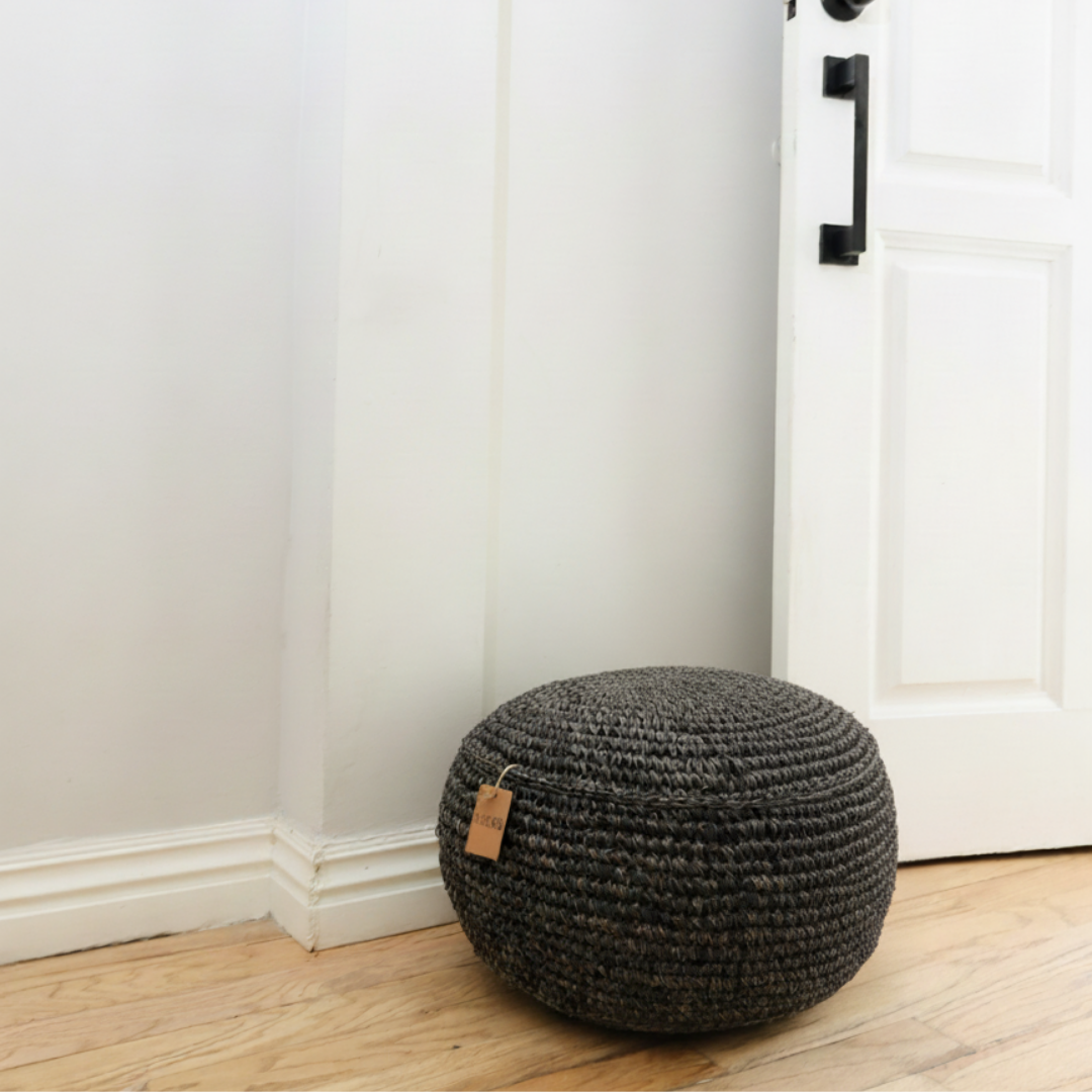 Puff Chipre hecho a mano en Sisal para completar cualquier espacio de tu casa.