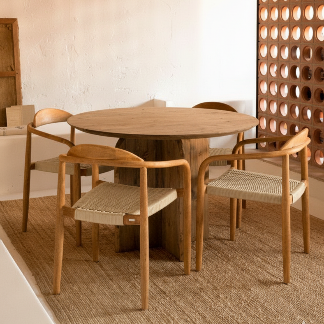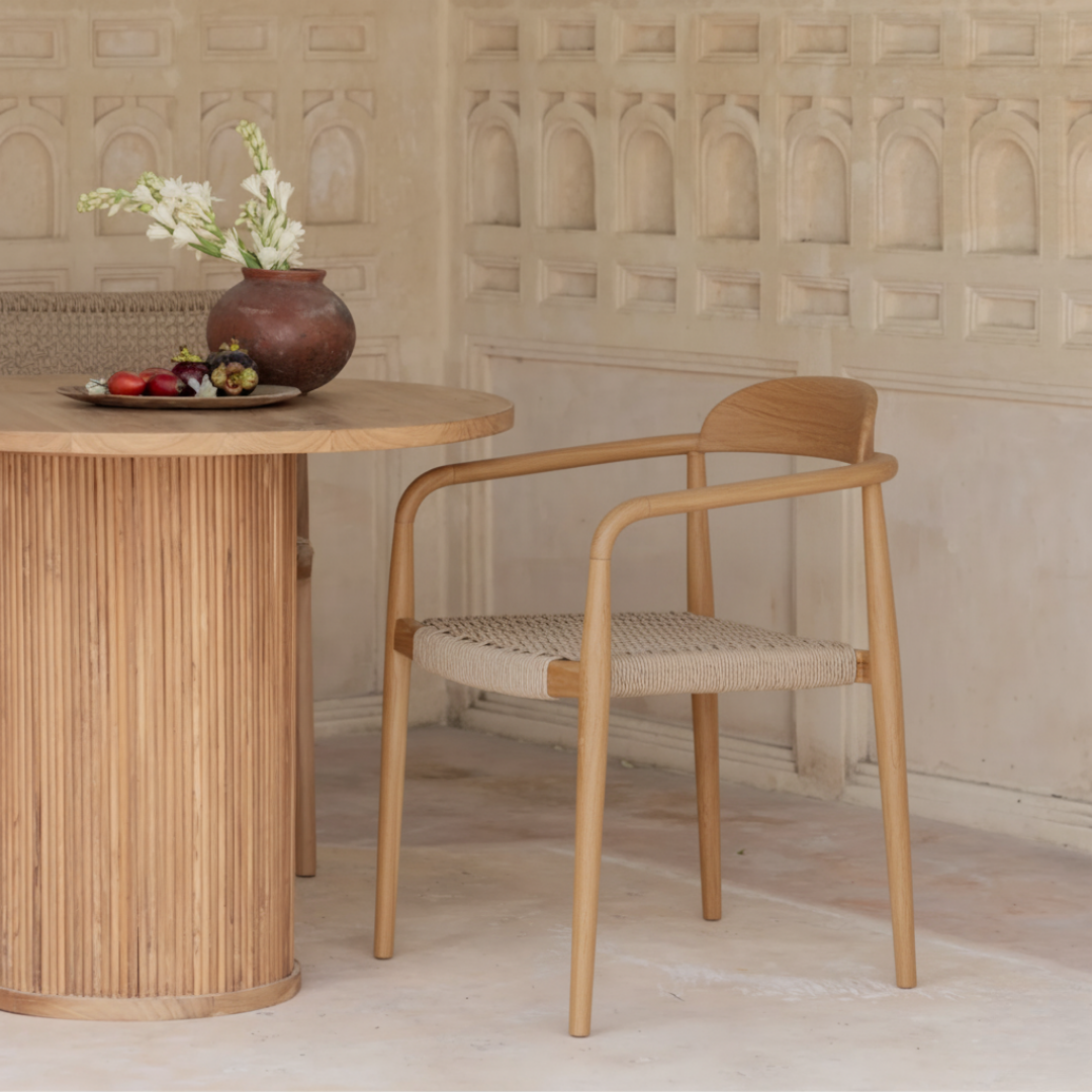 ¿Buscas la silla perfecta para tu casa? La silla Sira, con su estructura de madera de teca y asiento trenzado en cuerda natural, es la opción ideal para crear un ambiente minimalista y relajante. Su diseño elegante y funcional invita a momentos de confort, convirtiéndola en una pieza esencial que aporta estilo y calidez a cualquier espacio.