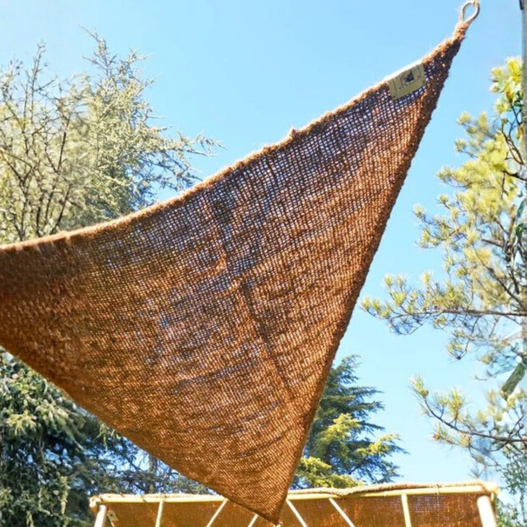 La tela de sombra triangular de fibra de coco es muy resistente, impermeable y antimohos. Una solución sostenible para los días de verano.
